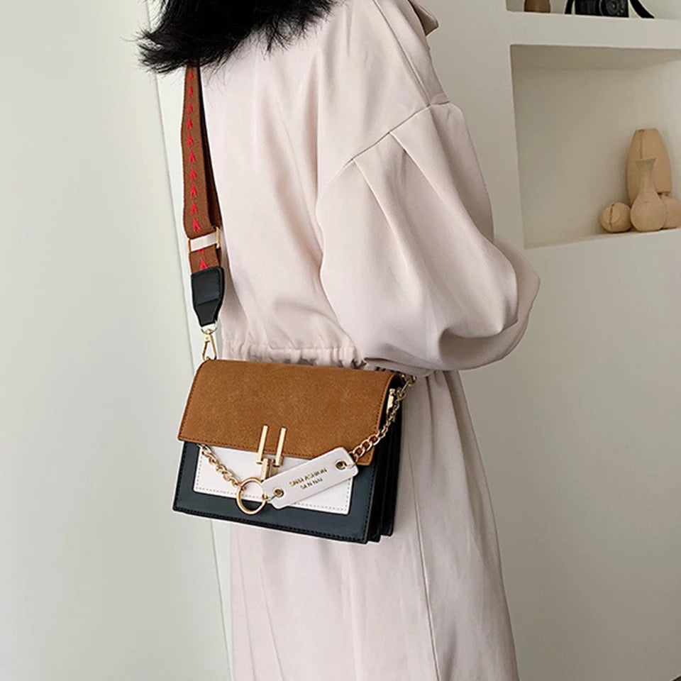 ✨ Diseño Color Block: Combinación de colores moderna y atractiva. 💖 Solapa de Gamuza Sintética: Textura suave y elegante. 🔗 Correa Ancha de Tela: Ajustable, cómoda y con patrón decorativo. 👑 Detalles Metálicos Dorados: Broche y cadena que añaden un toque de lujo. 👜 Espacioso: Interior bien organizado para tus esenciales. 🌈 Variedad de Colores: Disponible en diversas combinaciones para adaptarse a tu estilo.