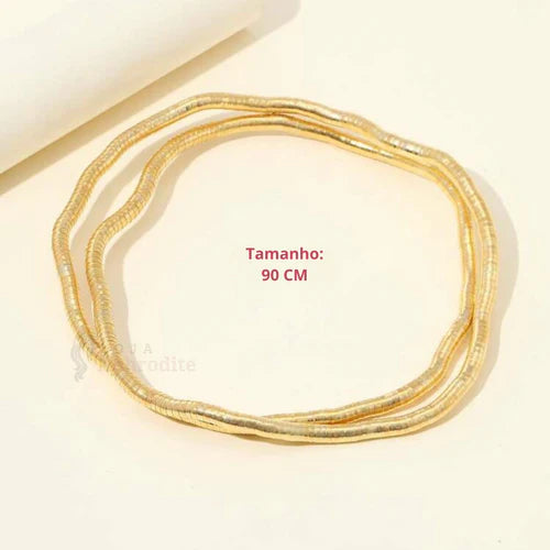Descripción corta: Collar dorado con diseño trenzado y flexible, ideal para adaptarse a diferentes estilos y ocasiones. Un toque de sofisticación para tu look. 💖